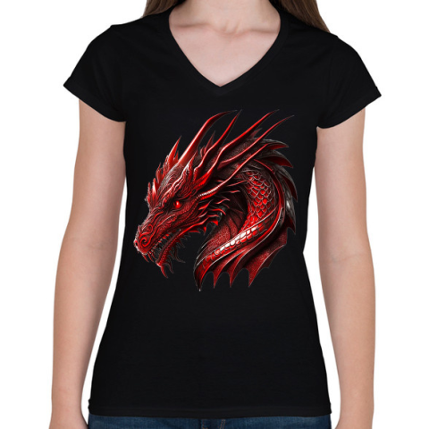 1 kép PRINTFASHION Sárkány - Női V-nyakú póló - Fekete