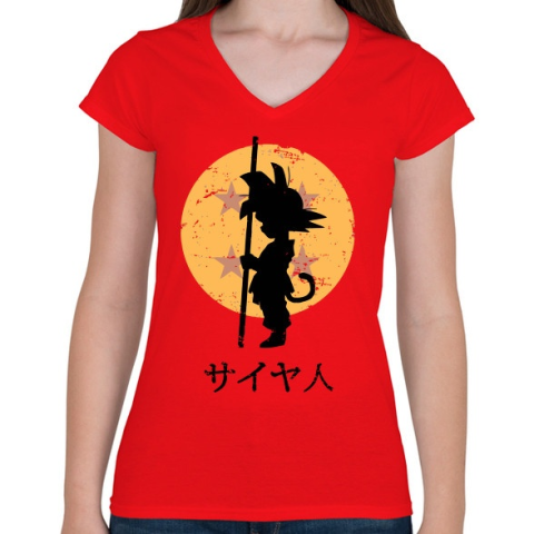 1 kép PRINTFASHION Sárkánygömb keresés - Női V-nyakú póló - Piros
