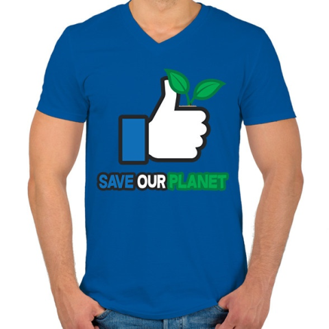 1 kép PRINTFASHION Save the planet! - Férfi V-nyakú póló - Királykék