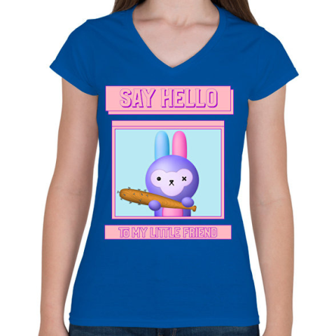 1 kép PRINTFASHION Say Hello - Női V-nyakú póló - Királykék