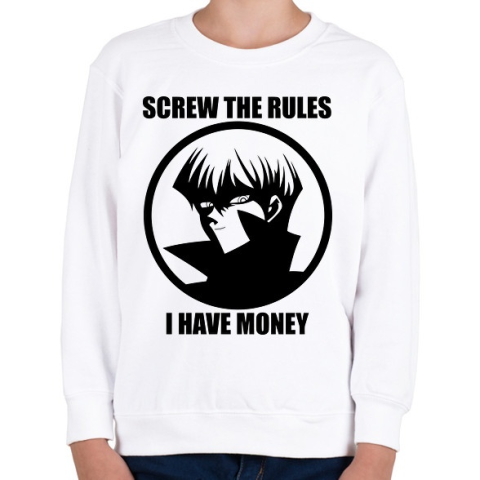 1 kép PRINTFASHION Screw the rules, i have money - Gyerek pulóver - Fehér
