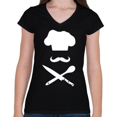 1 kép PRINTFASHION Séf logó - Női V-nyakú póló - Fekete