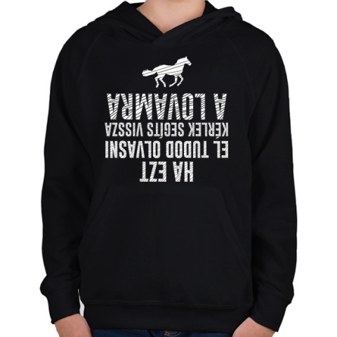 1 kép PRINTFASHION Segíts vissza a lovamra - Gyerek kapucnis pulóver - Fekete