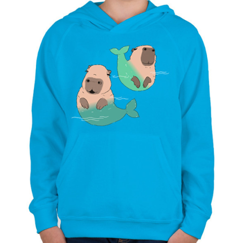 1 kép PRINTFASHION Sellő capybara - Gyerek kapucnis pulóver - Azúrkék