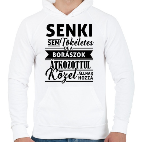 1 kép PRINTFASHION Senki sem tökéletes, de a borászok... - Férfi kapucnis pulóver - Fehér