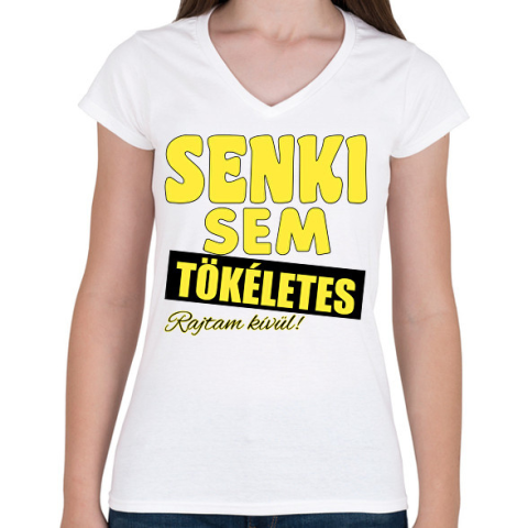 1 kép PRINTFASHION Senki sem tökéletes - Női V-nyakú póló - Fehér