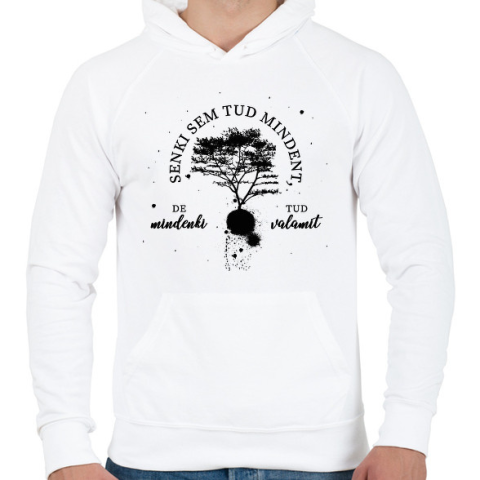1 kép PRINTFASHION Senki sem tud mindent - Férfi kapucnis pulóver - Fehér