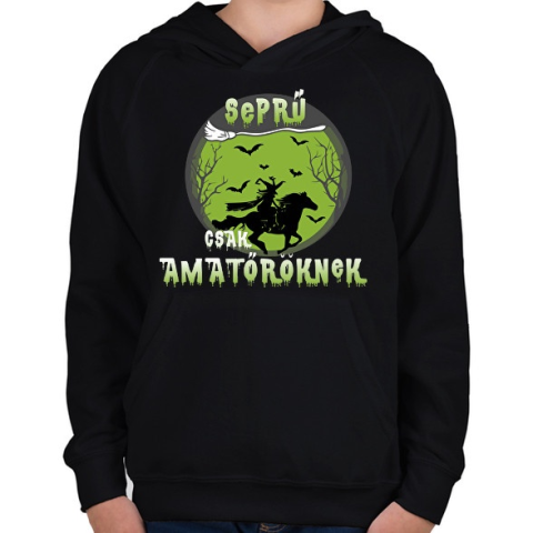 1 kép PRINTFASHION Seprű csak amatőröknek - Gyerek kapucnis pulóver - Fekete