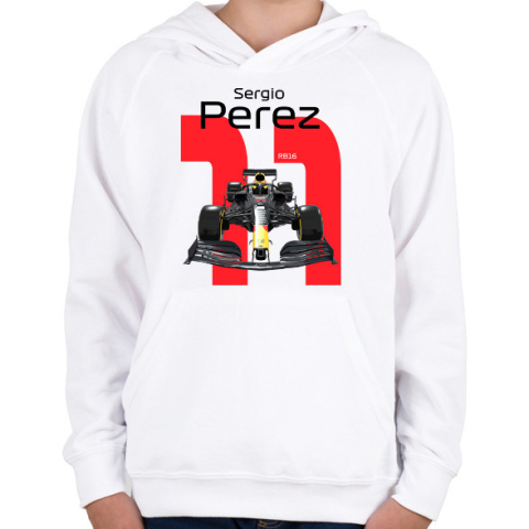 1 kép PRINTFASHION Sergio Perez 11 autóversenyző - fekete felirat - Gyerek kapucnis pulóver - Fehér