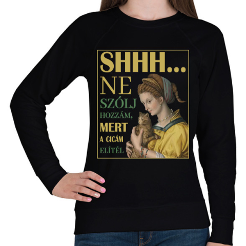 1 kép PRINTFASHION Shhh... ne szólj hozzám - Cicás - Női pulóver - Fekete