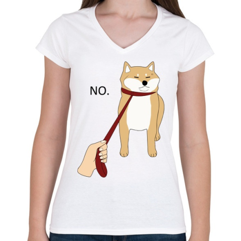 1 kép PRINTFASHION Shiba inu NEM sétál - Női V-nyakú póló - Fehér