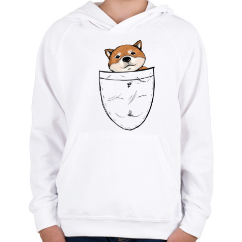 1 kép PRINTFASHION Shiba zsebminta - Gyerek kapucnis pulóver - Fehér