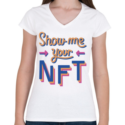 1 kép PRINTFASHION Show me your NFT - Női V-nyakú póló - Fehér