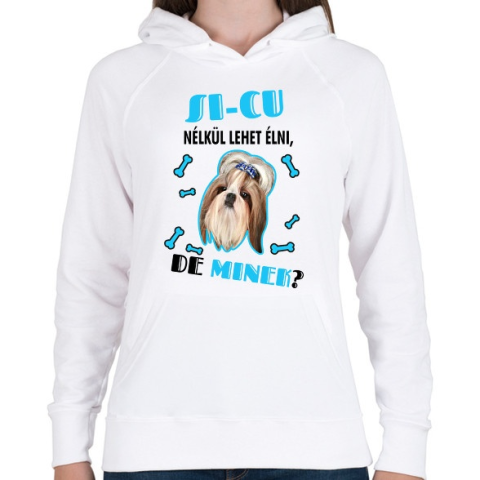 1 kép PRINTFASHION Si-cu nélkül lehet élni, de minek? - Női kapucnis pulóver - Fehér