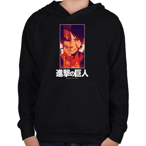 1 kép PRINTFASHION Singeki no kjodzsin character - Gyerek kapucnis pulóver - Fekete