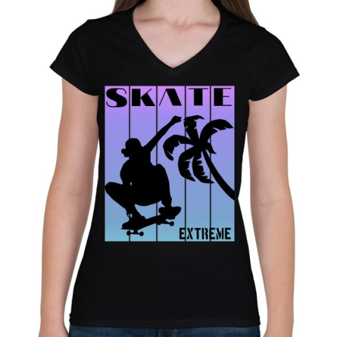 1 kép PRINTFASHION Skate extreme sport - Női V-nyakú póló - Fekete