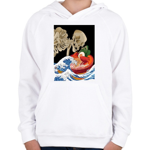 1 kép PRINTFASHION Skeleton eat sh*t - Gyerek kapucnis pulóver - Fehér