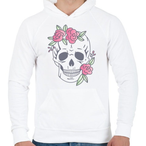 1 kép PRINTFASHION skull - Férfi kapucnis pulóver - Fehér
