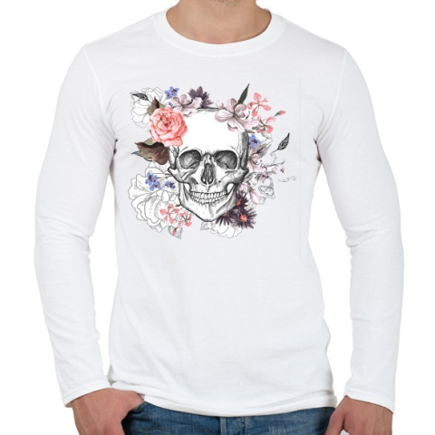 1 kép PRINTFASHION Skull with Flowers - Férfi hosszú ujjú póló - Fehér