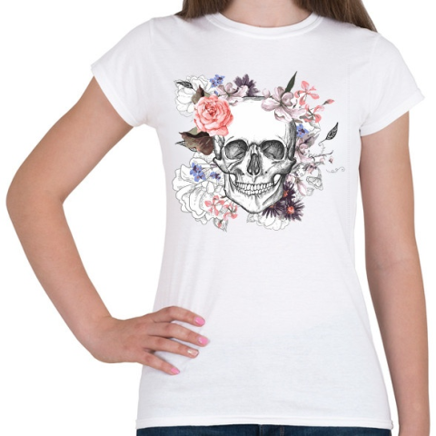 1 kép PRINTFASHION Skull with Flowers - Női póló - Fehér