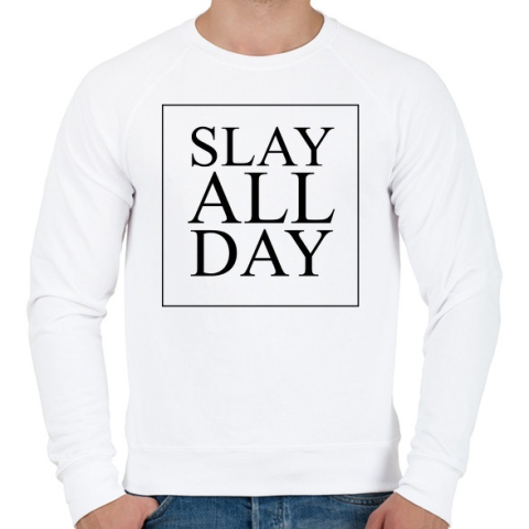 1 kép PRINTFASHION SLAY ALL DAY - Férfi pulóver - Fehér