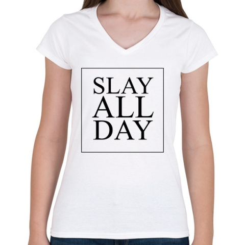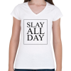 1 kép PRINTFASHION SLAY ALL DAY - Női V-nyakú póló - Fehér