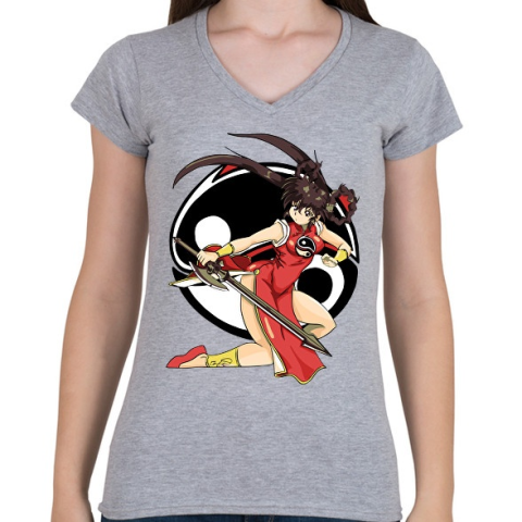 1 kép PRINTFASHION Slayer Girl - Női V-nyakú póló - Sport szürke