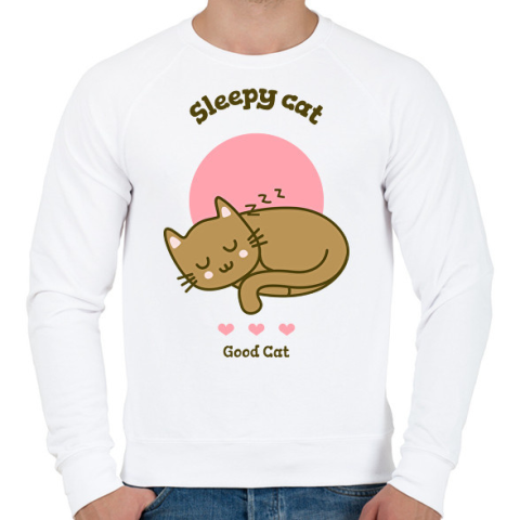 1 kép PRINTFASHION sleepycat - Férfi pulóver - Fehér
