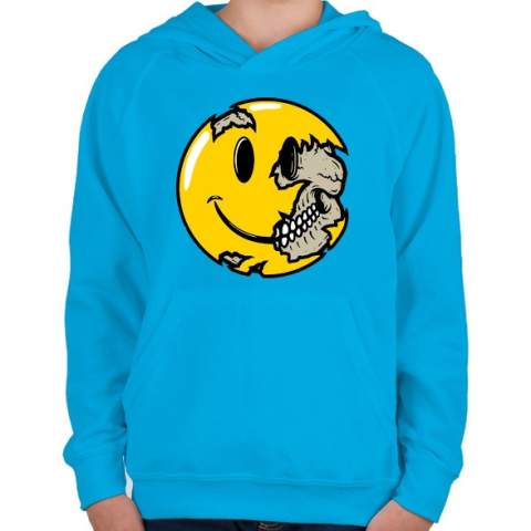 1 kép PRINTFASHION Smile koponya - Gyerek kapucnis pulóver - Azúrkék