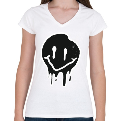 1 kép PRINTFASHION Smiley - Női V-nyakú póló - Fehér
