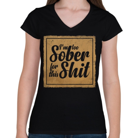 1 kép PRINTFASHION Sober - Női V-nyakú póló - Fekete