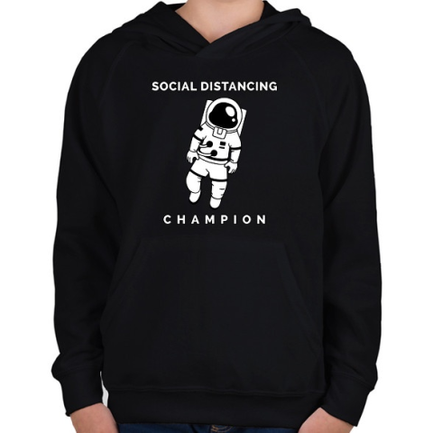 1 kép PRINTFASHION Social Distancing Champion - Gyerek kapucnis pulóver - Fekete