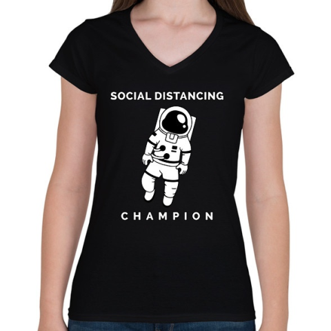 1 kép PRINTFASHION Social Distancing Champion - Női V-nyakú póló - Fekete
