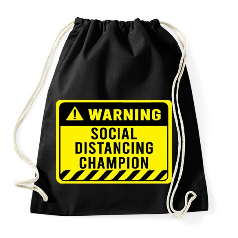 1 kép PRINTFASHION Social Distancing Champion Warning - Sportzsák, Tornazsák - Fekete
