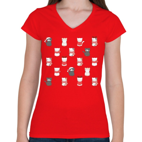 1 kép PRINTFASHION Sok cica kis helyen - Női V-nyakú póló - Piros