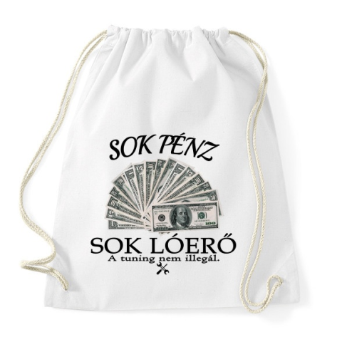 1 kép PRINTFASHION Sok pénz- Sok lóerő - Sportzsák, Tornazsák - Fehér