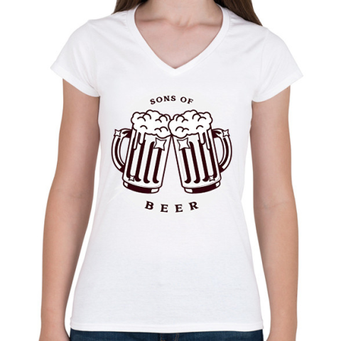 1 kép PRINTFASHION Sons of beer - Női V-nyakú póló - Fehér