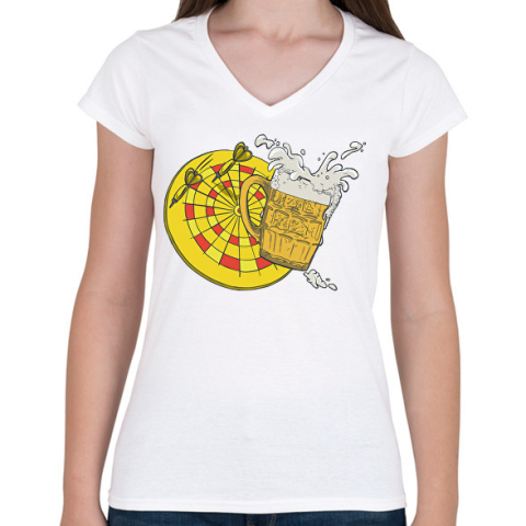 1 kép PRINTFASHION Sör és darts - Női V-nyakú póló - Fehér