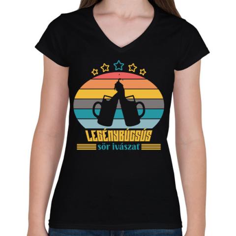 1 kép PRINTFASHION Sör ivászat - Női V-nyakú póló - Fekete