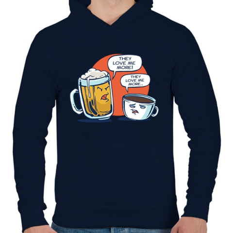 1 kép PRINTFASHION Sör vs. kávé - Férfi kapucnis pulóver - Sötétkék