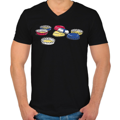 1 kép PRINTFASHION Sörös kupakok - Férfi V-nyakú póló - Fekete