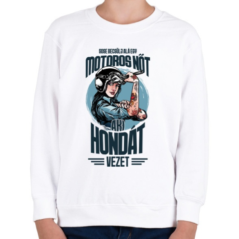 1 kép PRINTFASHION Sose becsülj alá egy motors nőt - Honda - Gyerek pulóver - Fehér