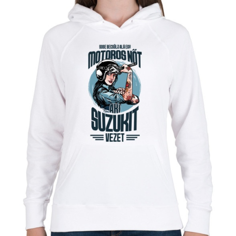 1 kép PRINTFASHION Sose becsülj alá egy motors nőt - Suzuki - Női kapucnis pulóver - Fehér