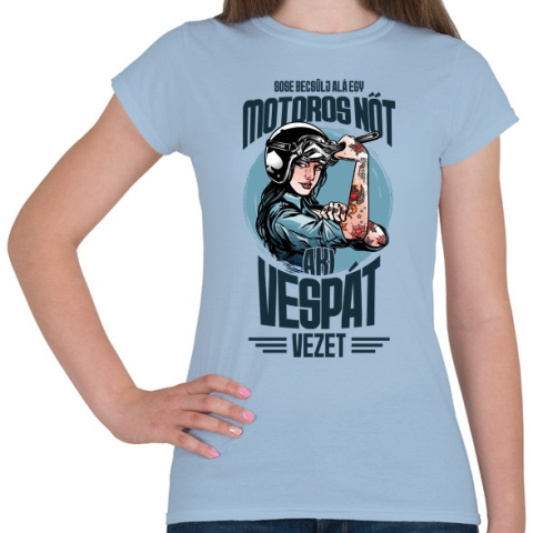 1 kép PRINTFASHION Sose becsülj alá egy motors nőt - Vespa - Női póló - Világoskék