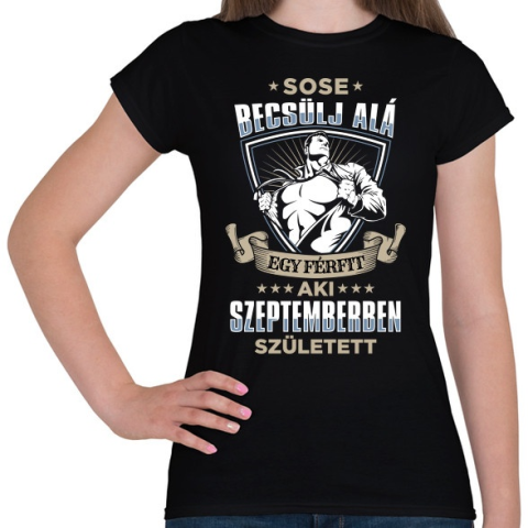 1 kép PRINTFASHION Sose becsülj alá, szeptemberben születtem - Női póló - Fekete