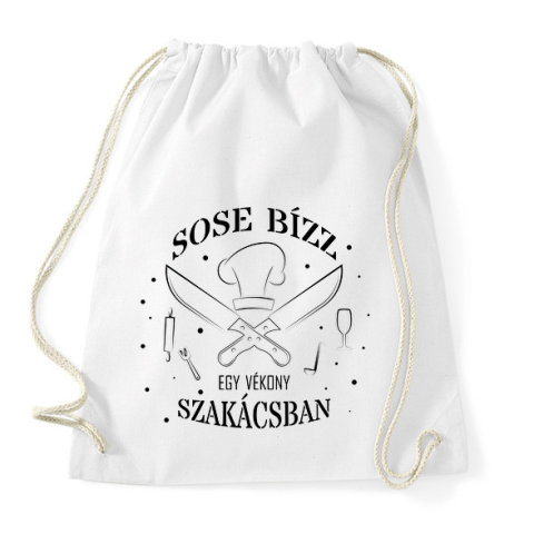 1 kép PRINTFASHION Sose bízz egy vékony szakácsban - Sportzsák, Tornazsák - Fehér
