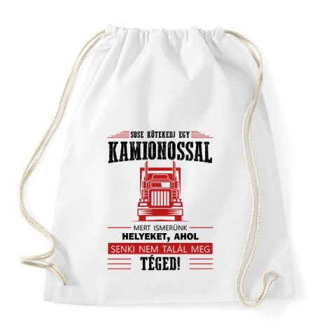1 kép PRINTFASHION Sose kötekedj egy kamionossal - Sportzsák, Tornazsák - Fehér