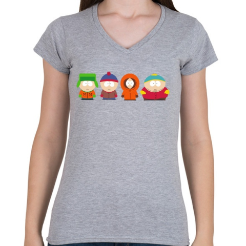 1 kép PRINTFASHION South Park - Női V-nyakú póló - Sport szürke
