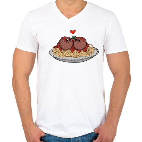 1 kép PRINTFASHION Spagetti szerelem - Férfi V-nyakú póló - Fehér