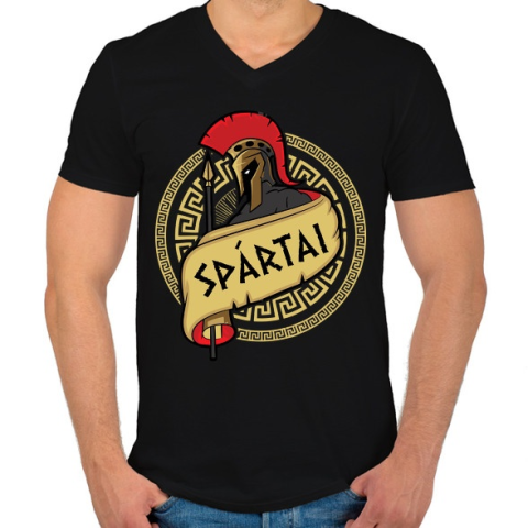 1 kép PRINTFASHION Spártai - Férfi V-nyakú póló - Fekete